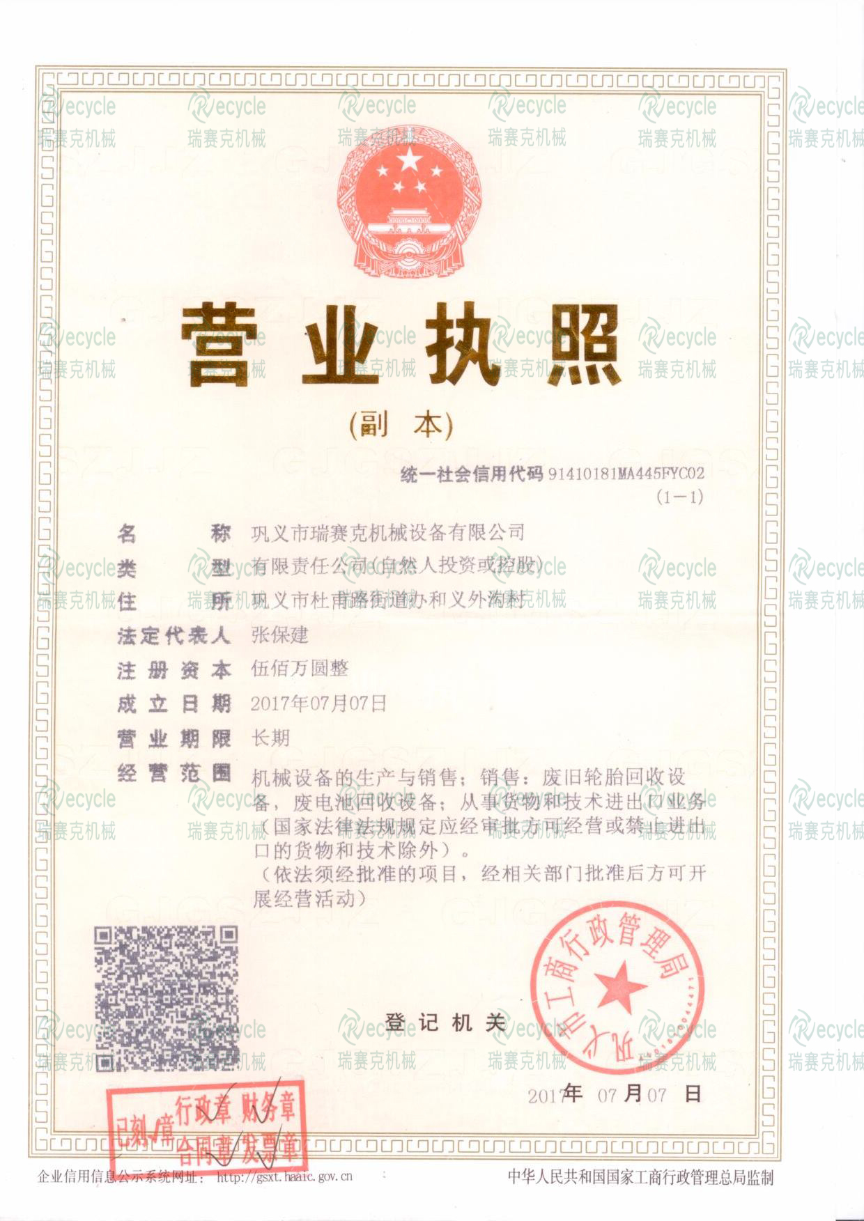 廢舊電池處理合作客戶(hù)鞏義市瑞賽克機(jī)械設(shè)備有限公司 總部地址:河南省鄭州市上街區(qū)科學(xué)大道1123號(hào) 豫ICP備17040395號(hào) 營(yíng)業(yè)執(zhí)照 榮譽(yù)資質(zhì)