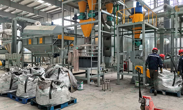 具體實施工藝,廢舊鋰電池進(jìn)入撕碎機進(jìn)行撕碎,撕碎后的電池進(jìn)入專用破碎機進(jìn)行破碎,將電池內(nèi)部正負(fù)極片及隔膜紙打散,打散后的物料經(jīng)氣流分選機和磁選輸送機進(jìn)行分選,以便能夠選出鐵磁性物質(zhì),后續(xù)的粉碎機、分析機、搖擺篩、研磨機、旋振篩以及比重分選機對磁選后的物料再次進(jìn)行破碎、研磨、分選以及篩分,使其粒徑更小,滿足回收需求,并且每個裝置均連接有脈沖除塵器和引風(fēng)機,避免污染因子過多排放,更加環(huán)保。,并設(shè)有整體的黑粉收集系統(tǒng),避免黑粉泄露和資源浪費,統(tǒng)一收集。